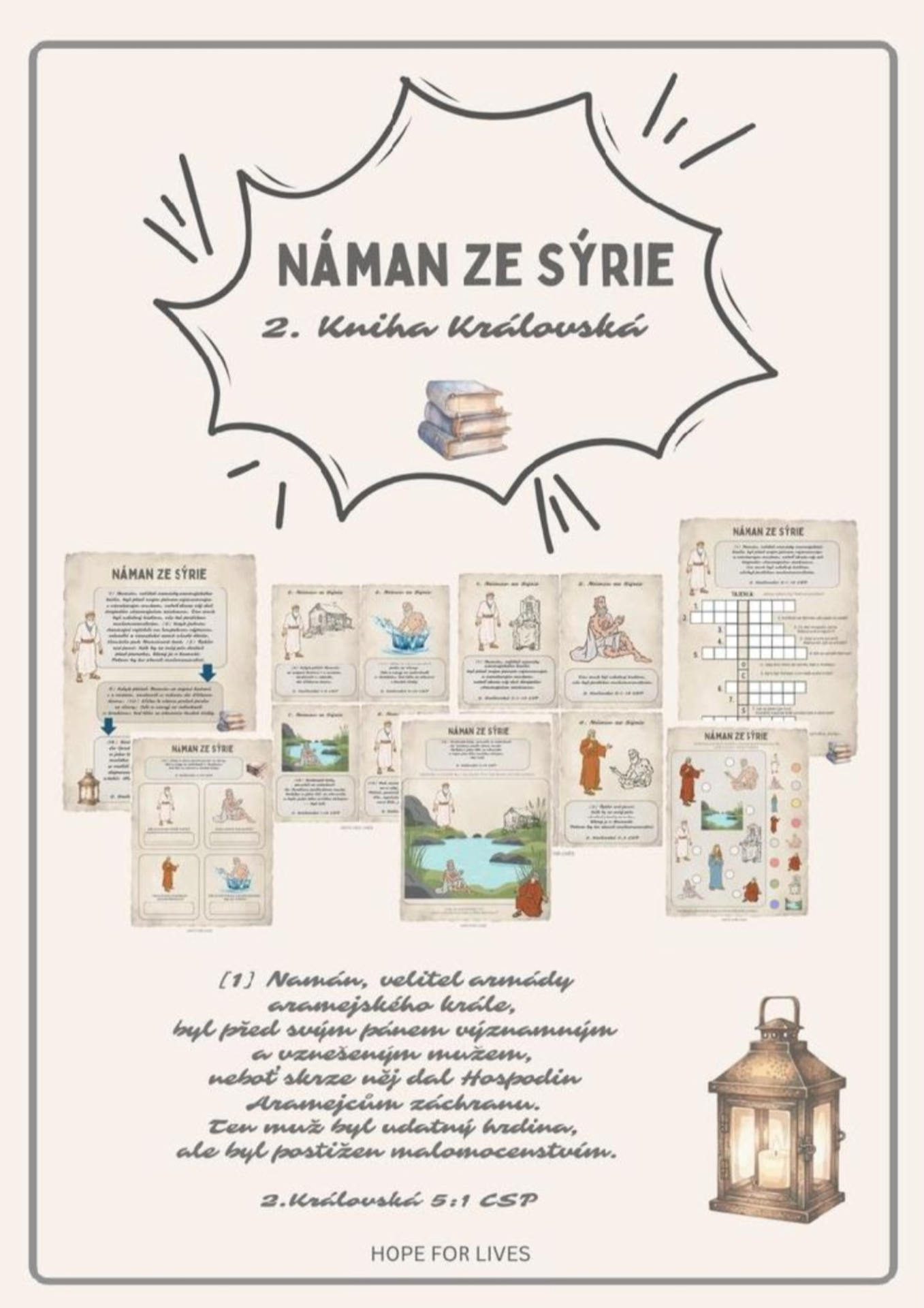 * Biblický příběh s verši * Obrázková předloha k vyprávění příběhu * Vyhledávání dvojic obrázků * Karty s verši * Otázky s obrazovou předlohou * Křížovka s řešením
