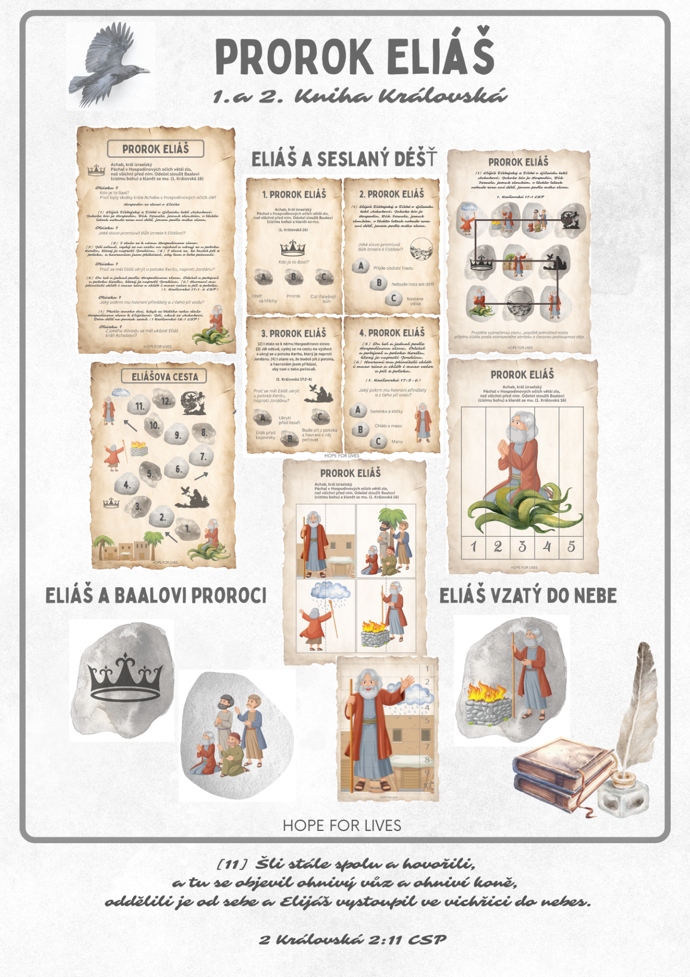 * Biblický příběh s verši a otázkami * Puzzle, skládání dvojic, spojovačka s veršem * Obrázová cesta k příběhu, stopovačka * Vyhledávání správných odpovědí * Sestavování slov příběhu * Stolní hra s plněním úkolů a kartami